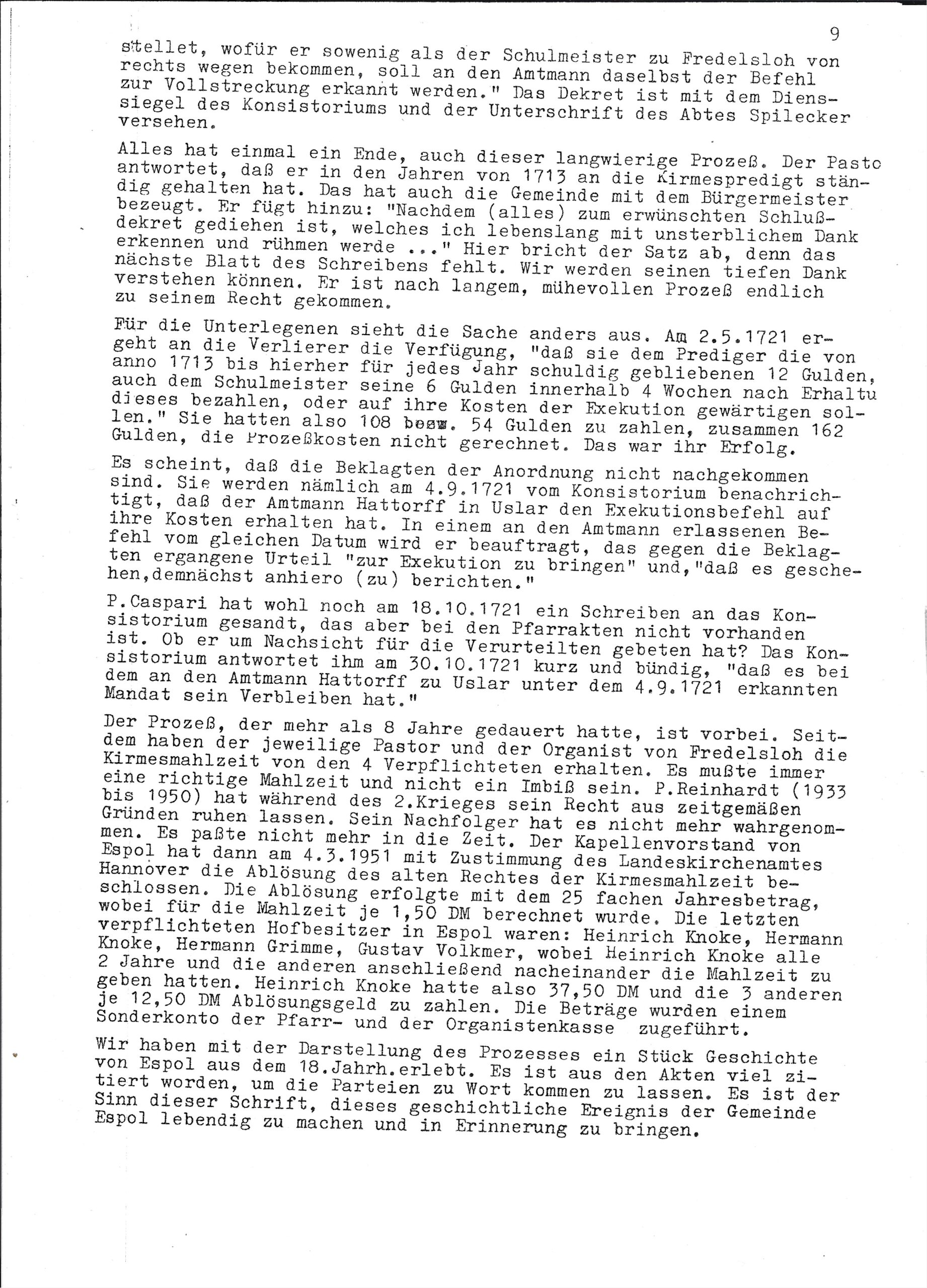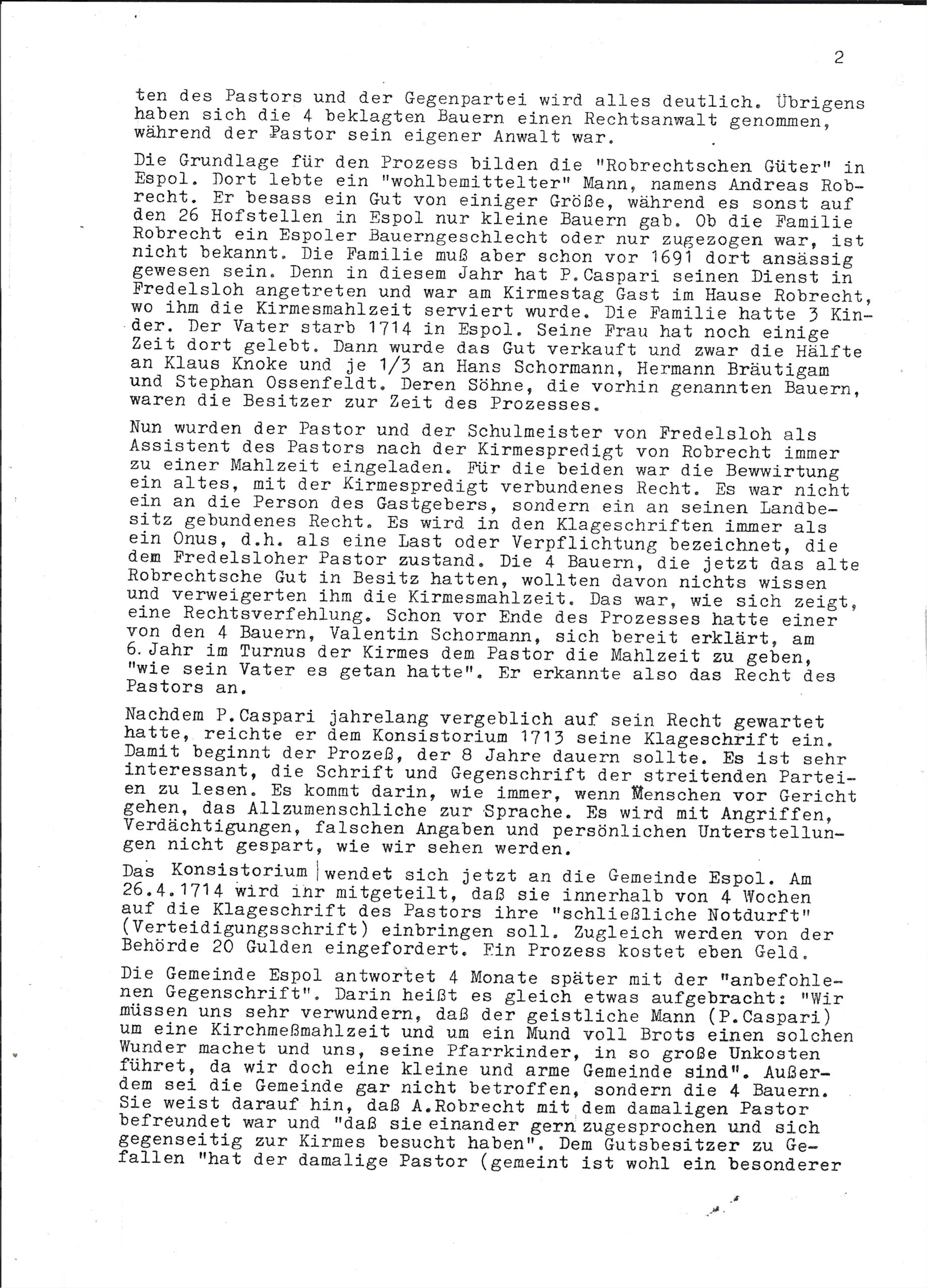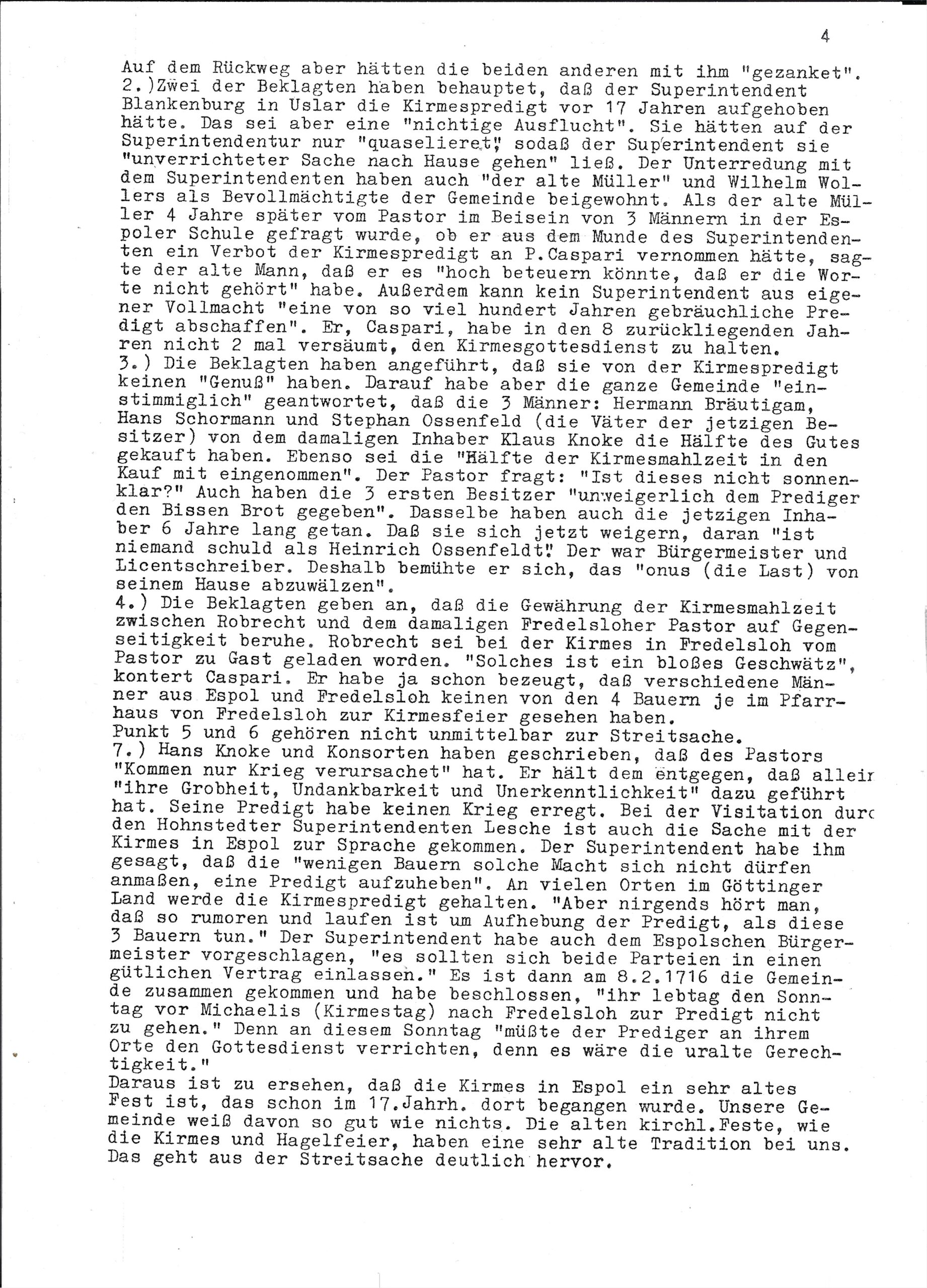 Der gerichtliche Streit scheint noch heute in Espol bekannt zu sein, Die wohl heute nicht mehr zeitgemäße Mahlzeit wurde zur Zeit Pastor Boths 1951 durch eine einmalige Zahlung abgelöst.