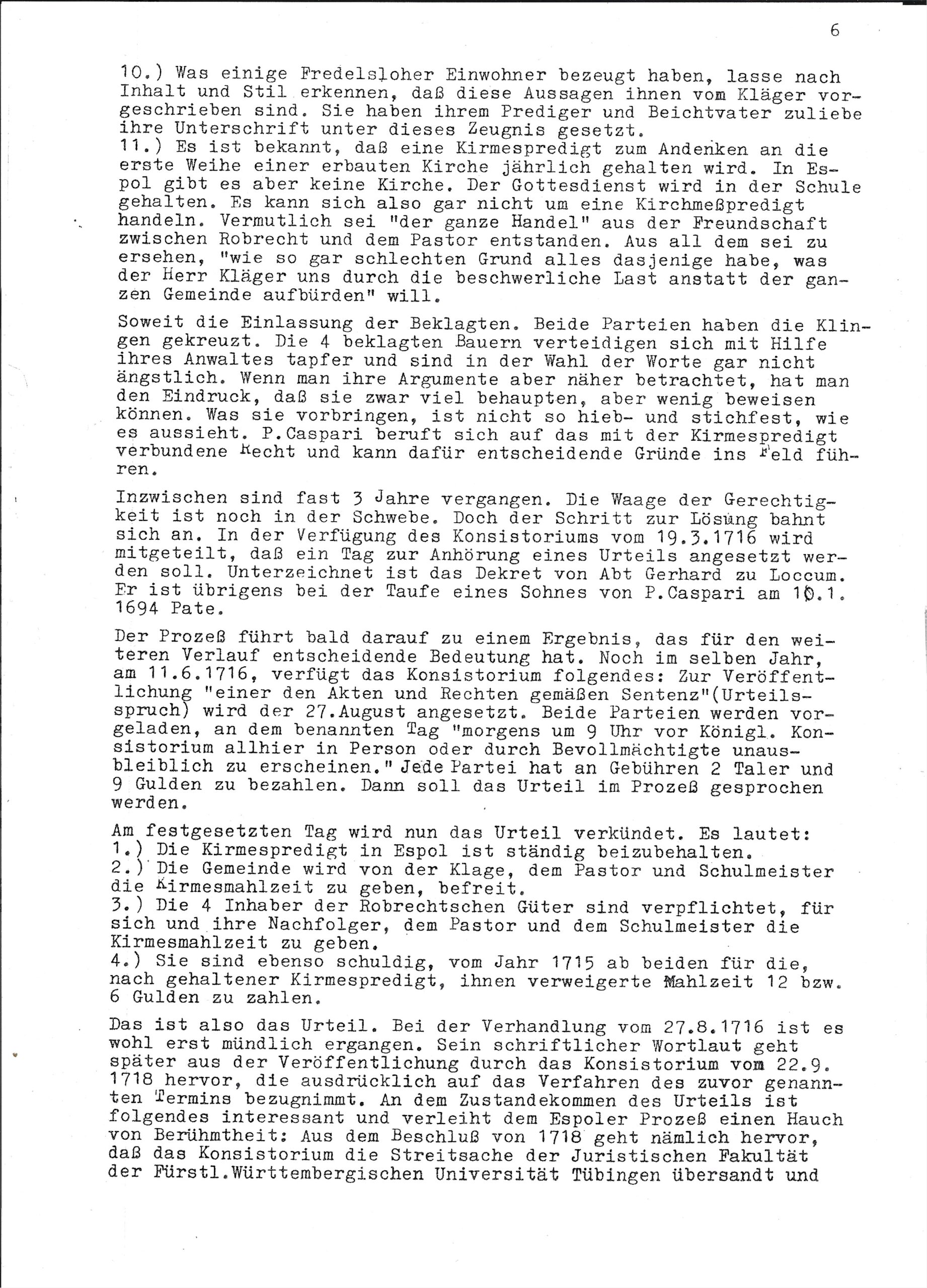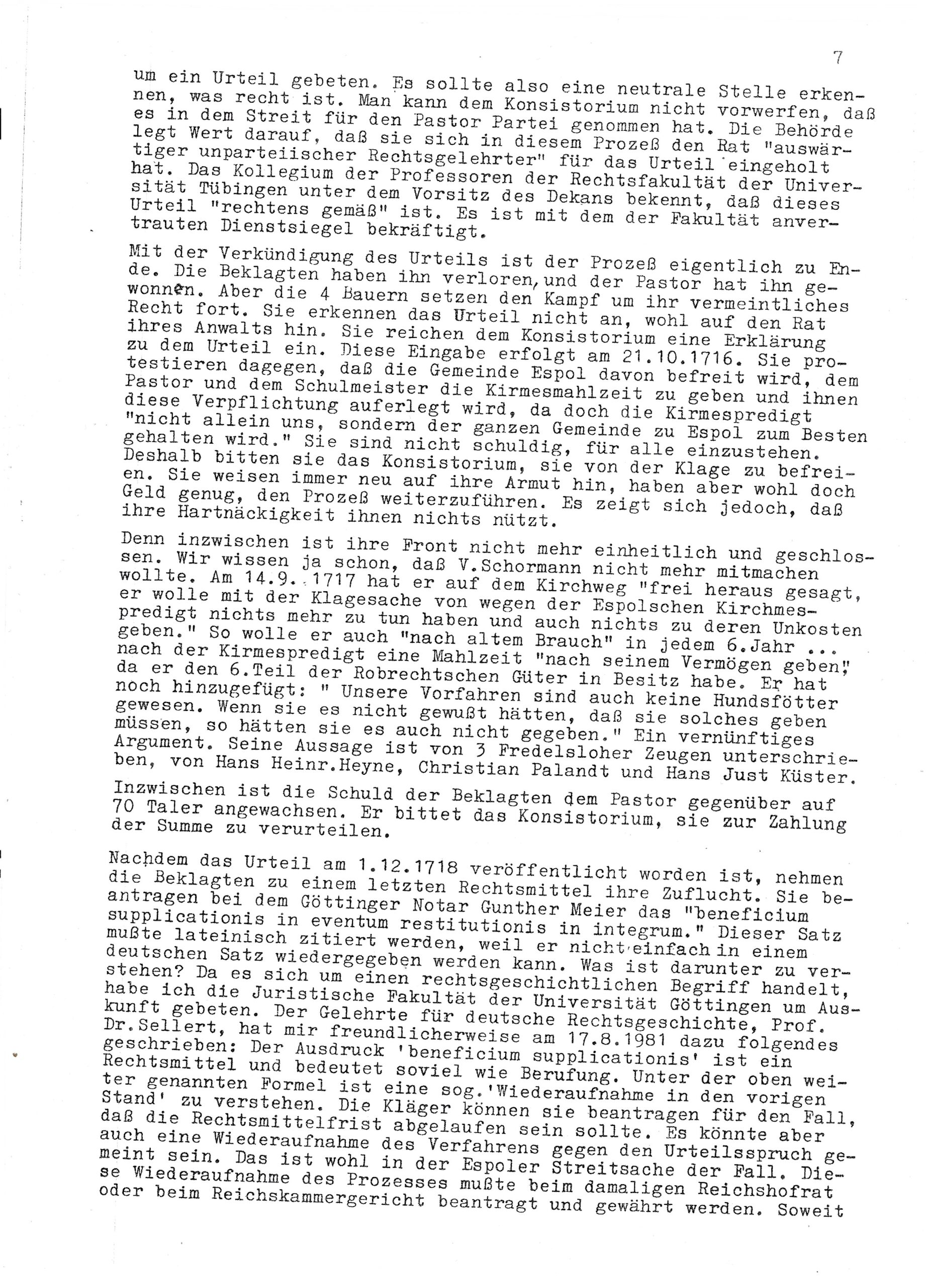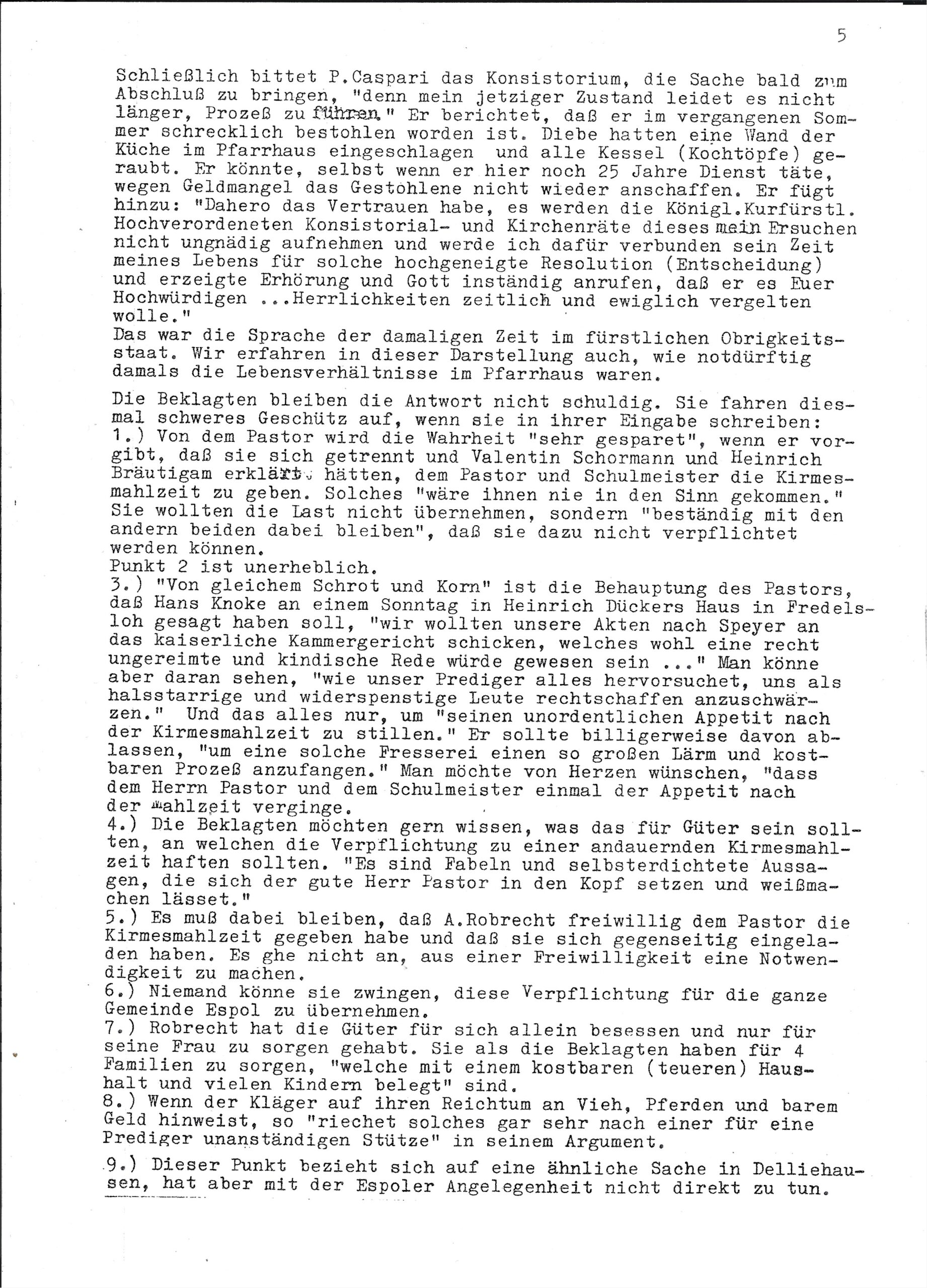 Der gerichtliche Streit scheint noch heute in Espol bekannt zu sein, Die wohl heute nicht mehr zeitgemäße Mahlzeit wurde zur Zeit Pastor Boths 1951 durch eine einmalige Zahlung abgelöst.