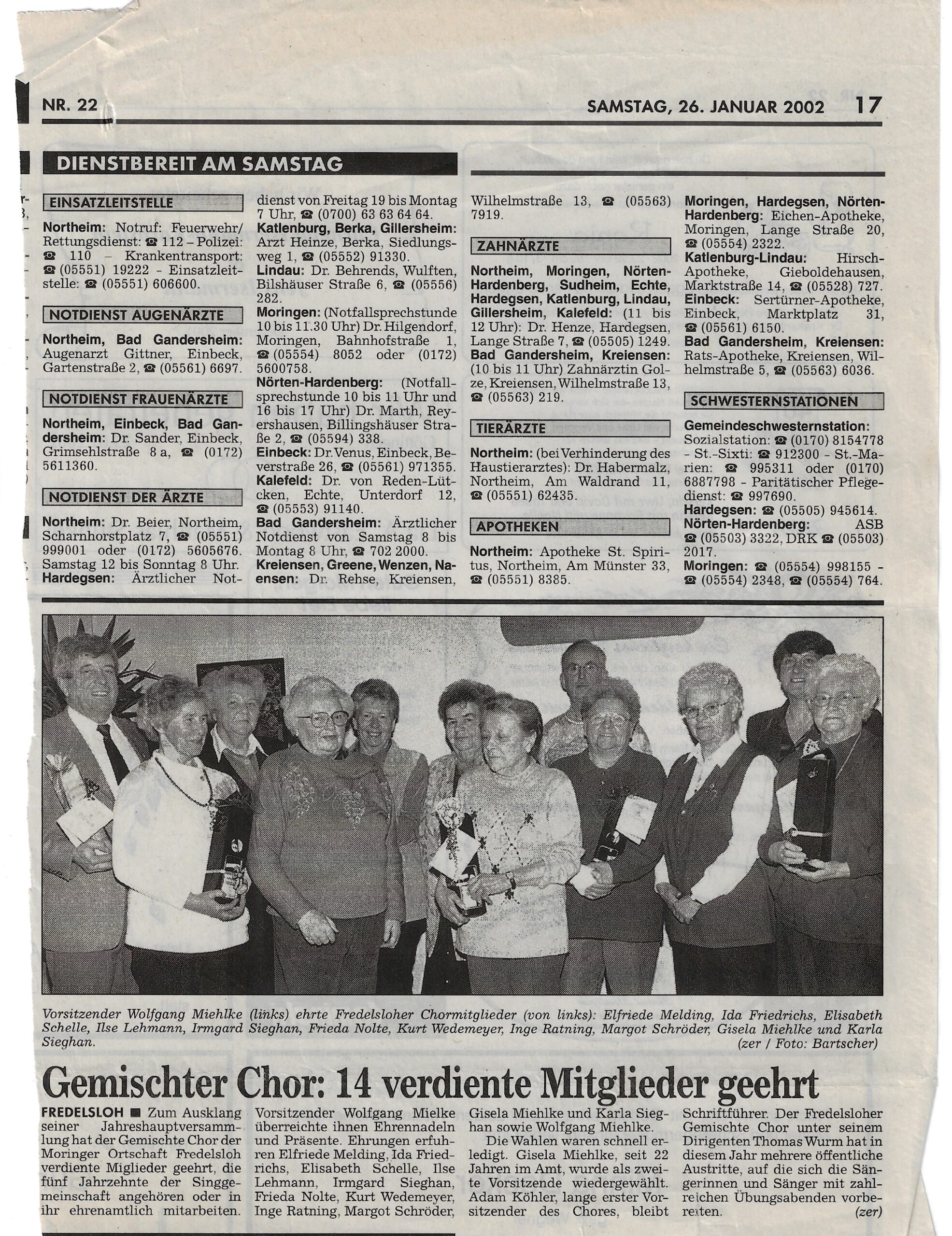 Männergesangverein und Gemischter Chor Fredelsloh – eine lange, wechselvolle Geschichte